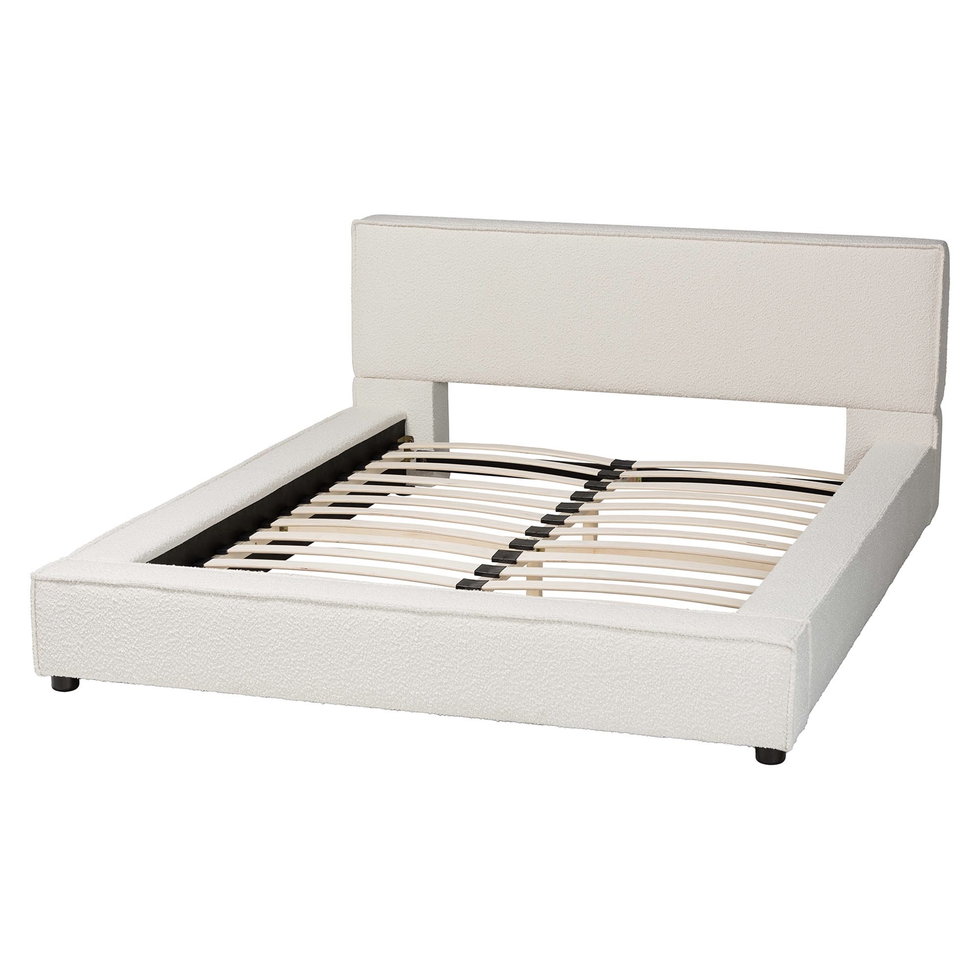 76.4″w x 95.70″l x 36″h, ivory boucle fabric, platform bed, needs mattress only