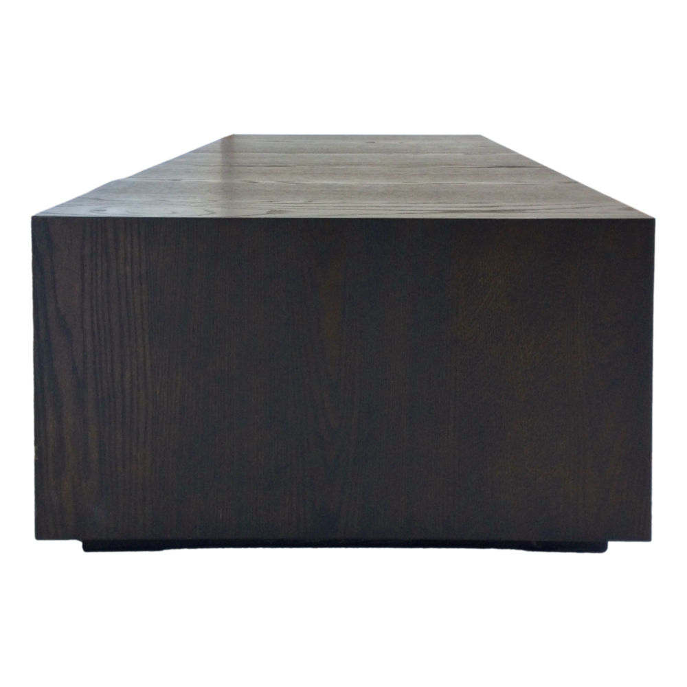 63″w x 27.5″d x 15.75″h, smoked walnut